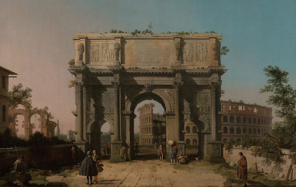 “Detail of View of the Arch of Constantine with the Colosseum” by Canaletto (1742-1745)